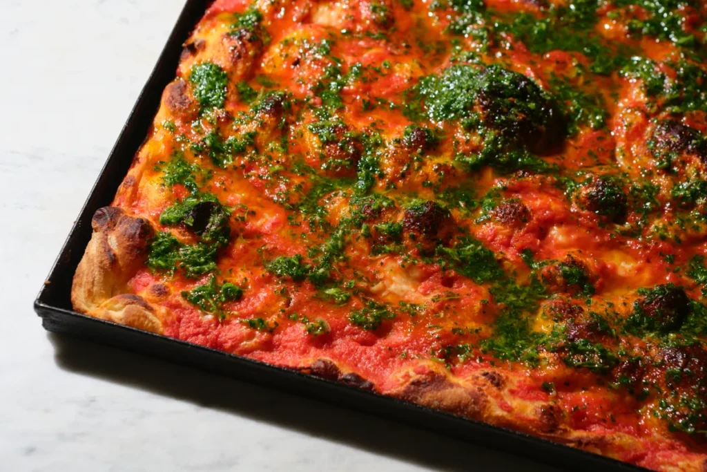 W Wilczym Głodzie robimy pizzę al taglio — rzymską, wypiekaną w dużych blachach i krojoną na kawałki. Pachnącą, chrupiącą i pełną charakteru.